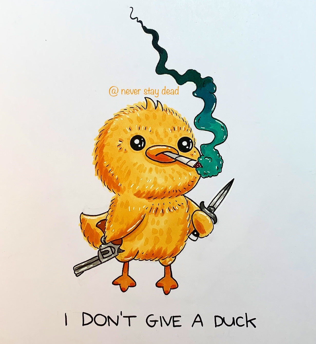 Mini original ‘I Don’t Give A Duck’ Drawing (A5) โ Never Stay Dead
